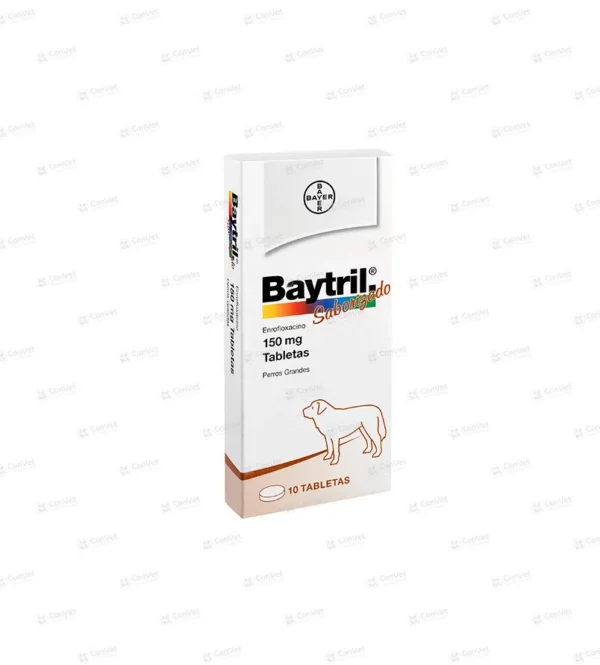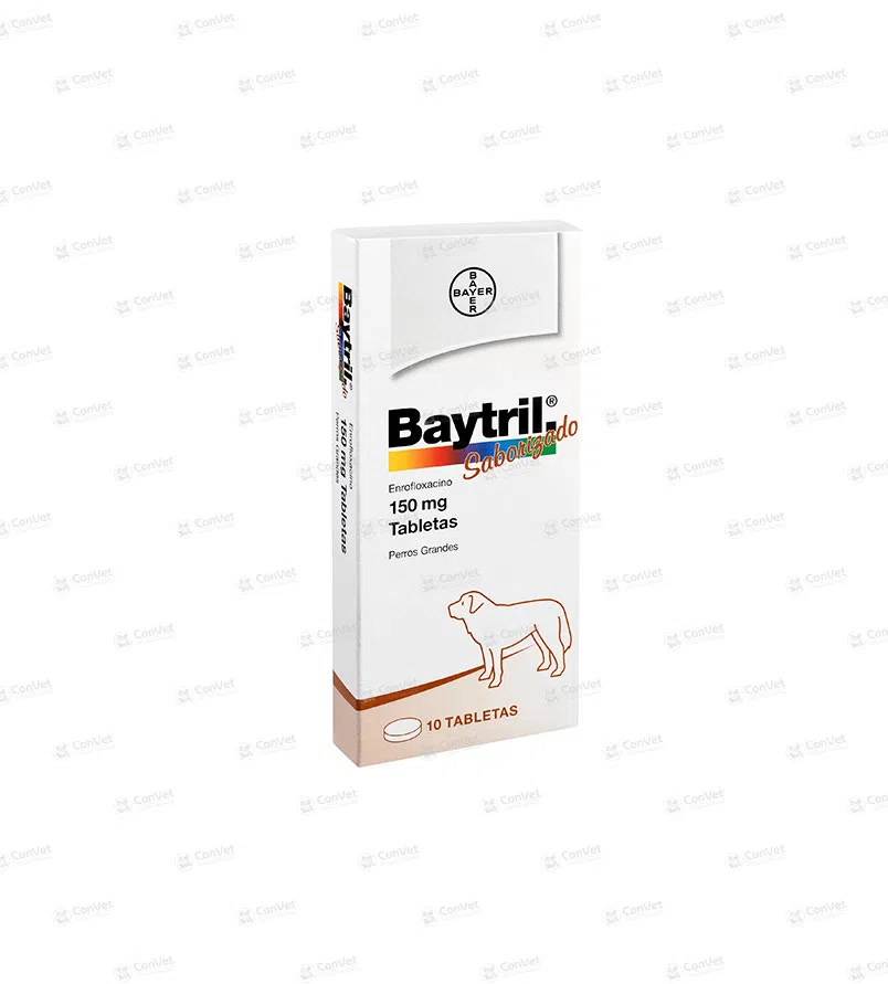 Para tratamientos de enfermedades infecciosas en perros, causadas por bacterias Gram positivas, Gram negativas, Mycoplasma, Rickettsias y Erlichia spp. Debido a su amplio espectro, se puede utilizar Baytril en infecciones individuales o mixtas del tracto respiratorio, urinario, gastrointestinal, así como de la piel, del canal auditivo e infecciones en heridas.