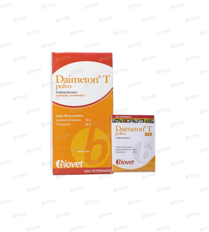 Cada 100 g contiene:Sulfamonometoxina 80 gTrimetoprim 20 g